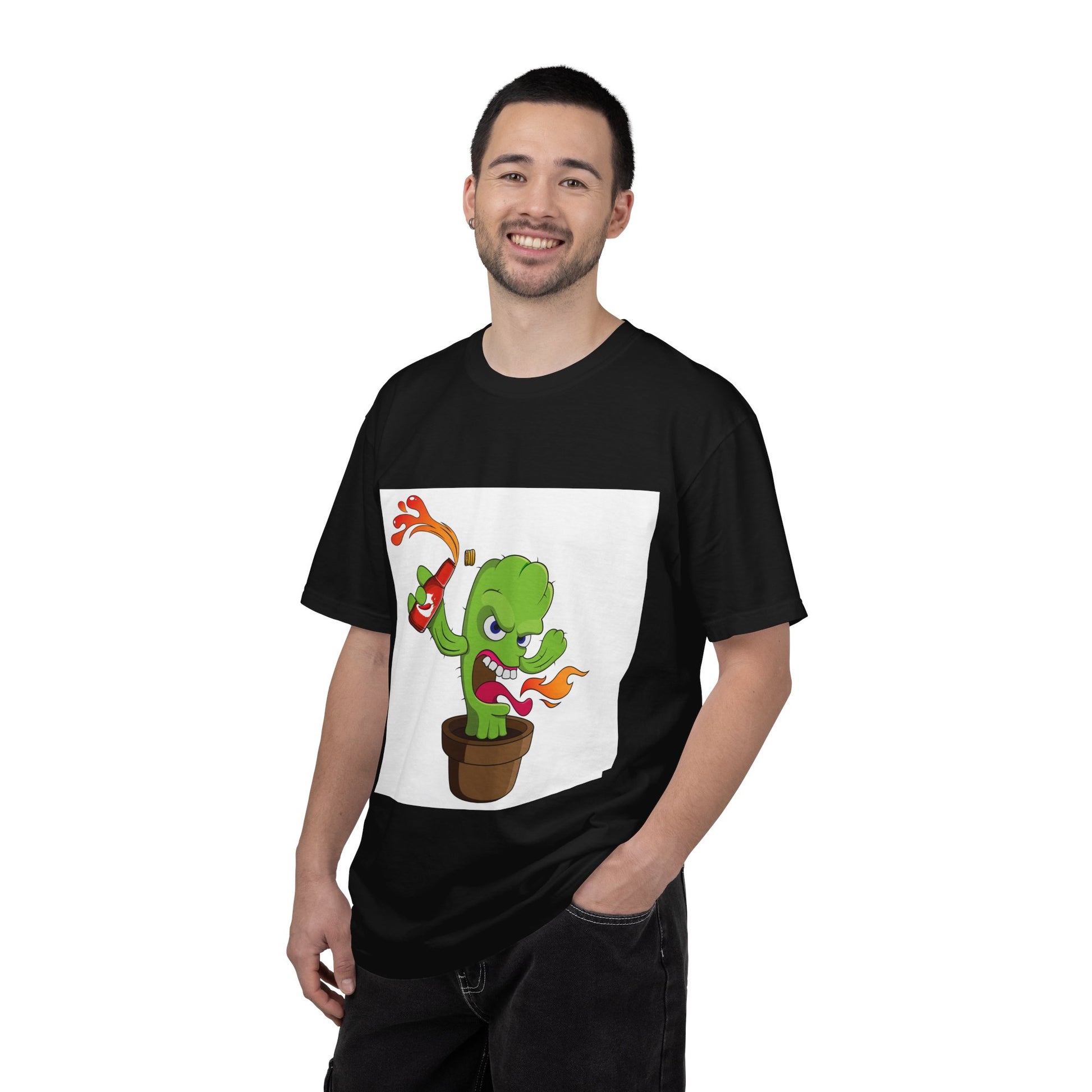 Fiery Cactus Cartoon T-Shirt – Hot Sauce Squeeze Plant Tee
